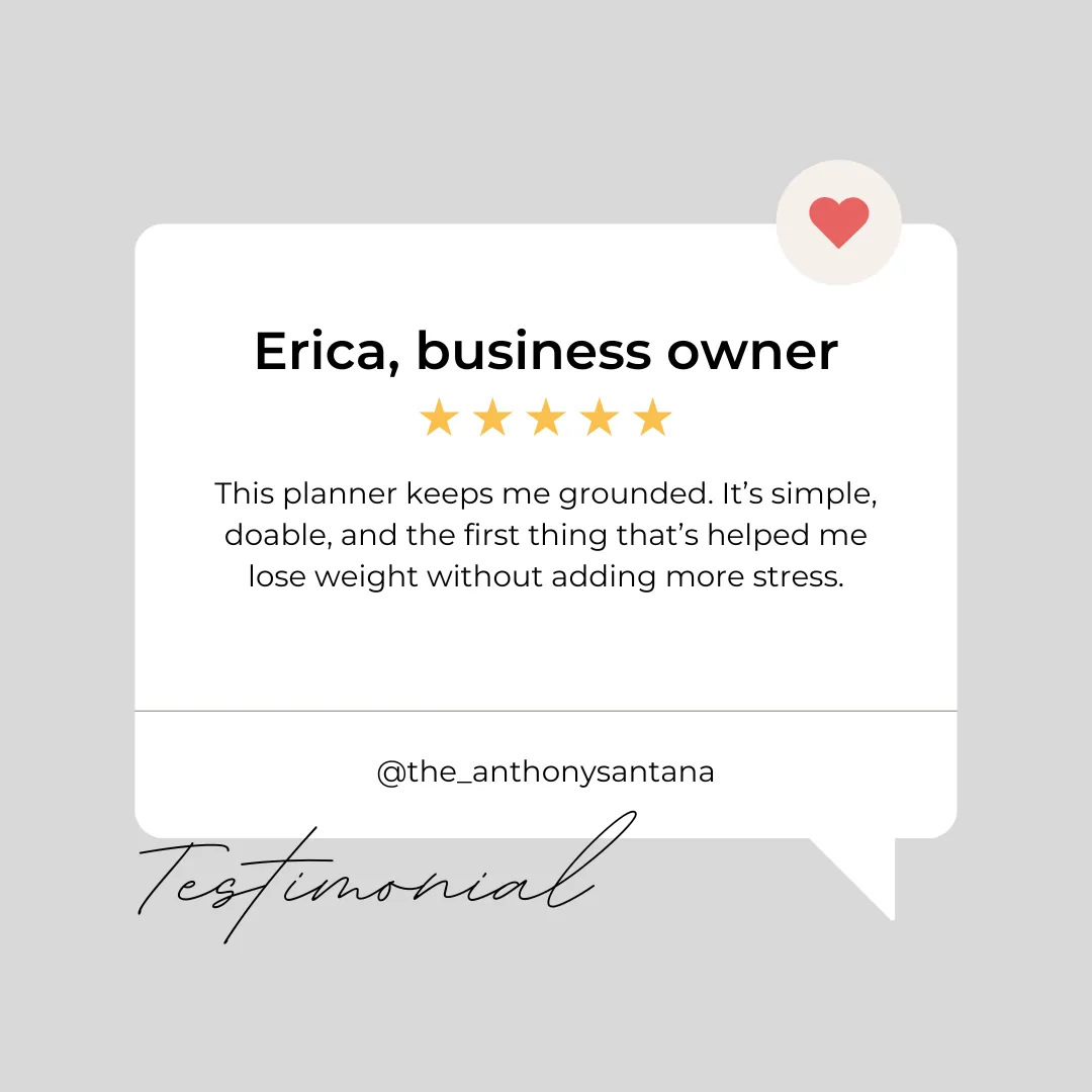 Nope! This is NOT a diet plan. This planner helps you build real, sustainable habits that fit your lifestyle. You’ll learn how to plan your meals throughout the day and stay active in a way that works for YOU—without extreme restrictions or endless cardio.
