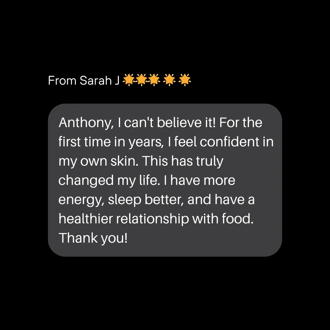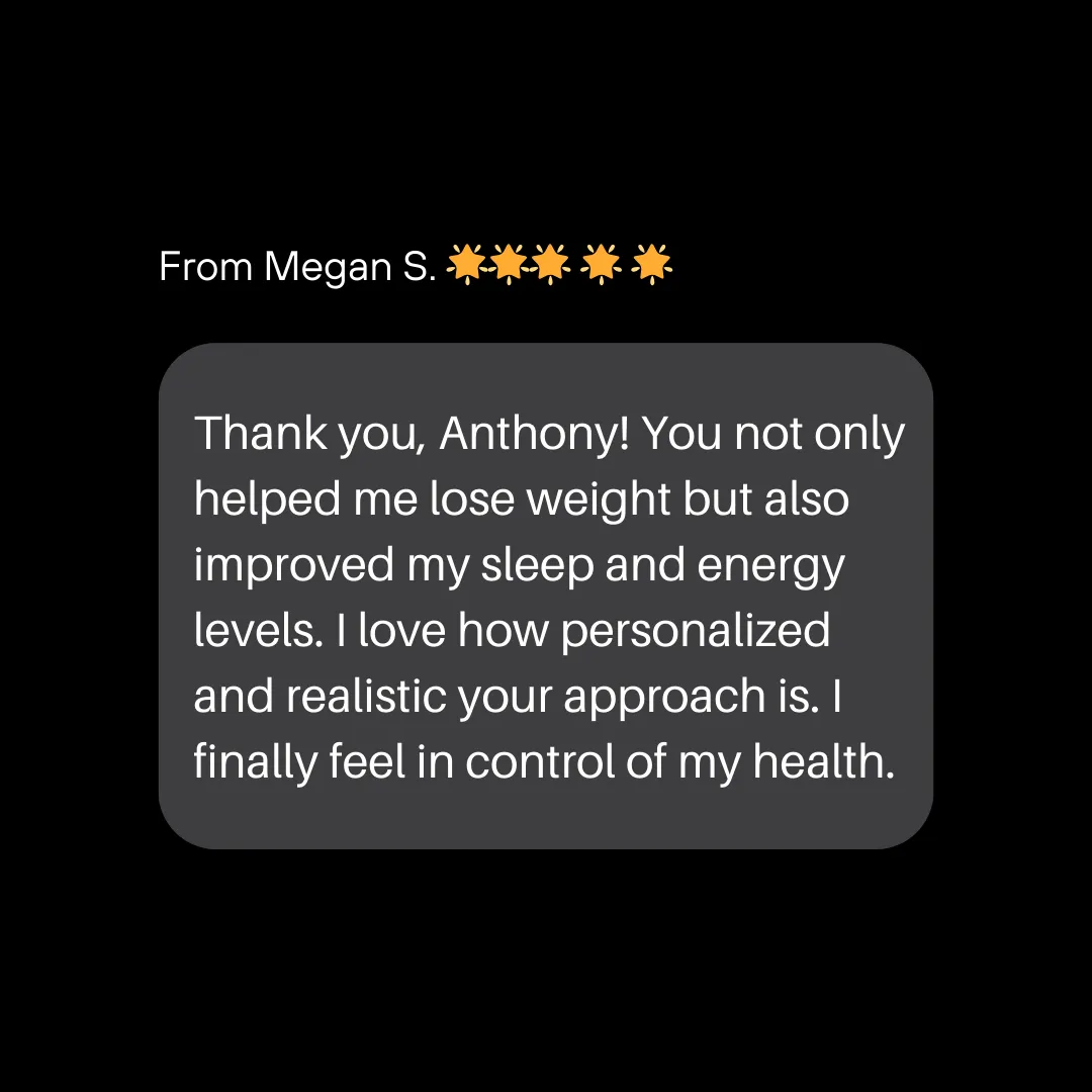 Instead of a one-size-fits-all approach, Anthony helped me understand my unique metabolism and designed a plan that worked for my body and my lifestyle.
